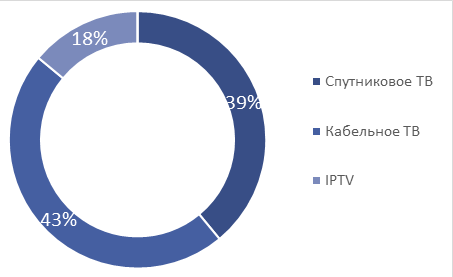 Доли сегментов платного ТВ в общем объеме услуг по итогам 3Q 2017 года