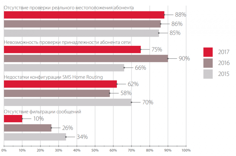 - недостатки конфигурации SMS Home Routing (62%);