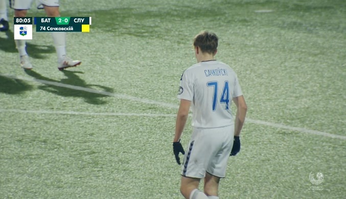 Начался день в «вышке» с игры «Спутника» и брестского «Динамо» (0:4) – но не в Речице, а в Гомеле на стадионе местной СДЮШОР, мягко говоря, слабо готовом к организации топ-показа. Full HD, прямо скажем, не пахло – да просто разглядеть что-то на общем плане и даже с повтора иногда было сложно. Подводило и расположение камер – например, про справедливость назначения пенальти в пользу «Динамо» за игру рукой Тина Вукманича мы можем только по отскоку мяча (на еще одном потенциально удачном плане, не попавшем в обзор, оператор не сумел взять момент в кадр) (отметка 1:33).