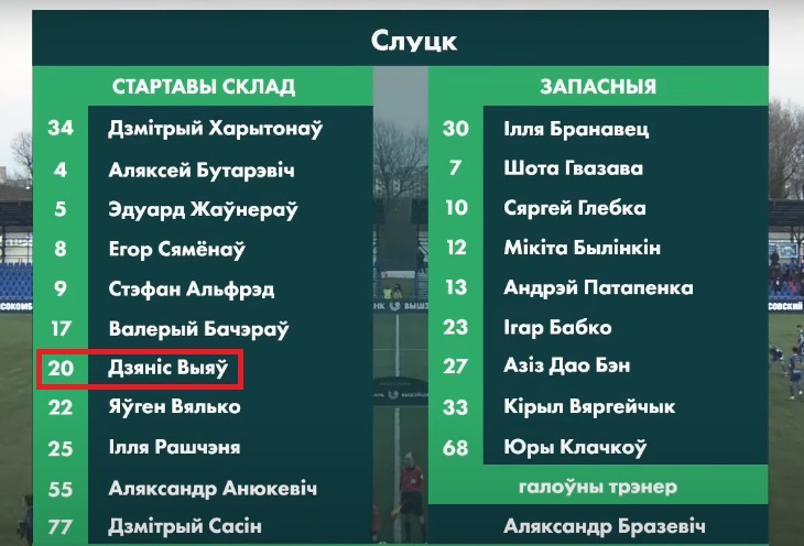 Завершалось воскресенье «вышки» на стадионе ФК «Минск» игрой БАТЭ со «Слуцком» (3:0). И здесь произошел эпик фэйл с еще одной составляющей любой футбольной трансляции – титрами. Кажется, для графики фамилии игроков «Слуцка» переводили с русского через какой-нибудь онлайн-сервис – в целом более-менее справиться удалось, но наличие в основе Дениса Образова привело к провалу. Похоже, машина восприняла «Образов» как форму слова «образ», что на белорусский переводится как «выява». Вот это слово в аналогичный родительный падеж множественного числа и поставили – так в кадре родился футболист с фамилией Выяў.