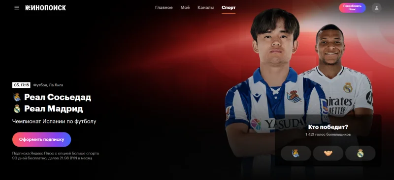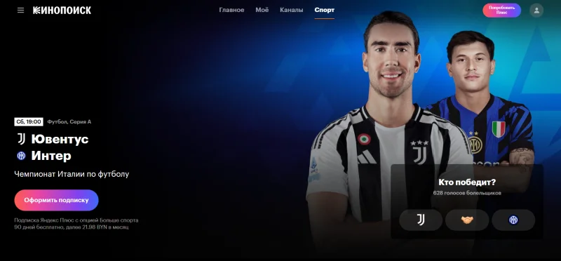 На этих выходных, С 12 по 14 сентября, болельщиков ожидают яркие спортивные противостояния Лиги 1, Ла Лиги, Серии А и не только. Все трансляции будут доступны в Беларуси на "Кинопоиске" по подписке с опцией "Спорт" — смотреть можно в прямом эфире и в записи, в том числе на телевизорах со Smart TV и мобильных устройствах.