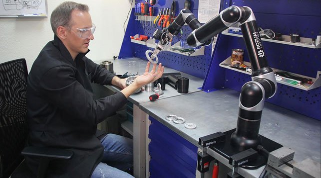 По словам гендиректора Rozum Robotics, в основном такие роботы используются в промышленности для оптимизации производства. Но сейчас их начинают активно применять в разных отраслях - здравоохранении, сельском хозяйстве. "Этого робота можно приспособить практически для любого производства: везде есть определенные операции, повторяющиеся действия, которые можно автоматизировать. Робот может освободить человека от скучной, монотонной работы либо работы с опасными химическими веществами. Например, мы разговаривали с представителями одной фабрики, которая занимается изготовлением обуви. У них есть необходимость приклеивать подошву к ботинку, а для этого нужно равномерно нанести клей. Человек не может справиться с этой работой так идеально, как робот, к тому же, такой труд вреден для здоровья, поэтому эту операцию выгоднее автоматизировать. К нам сейчас приходят не только с предприятий, медики тоже интересуются. Если установить на робота необходимое оборудование, то его можно будет использовать, например, вместо рентгеновского аппарата. И сельское хозяйство проявляет интерес: аграриям пригодился бы робот для сбора огурцов, помидоров или яблок", - отметил он.