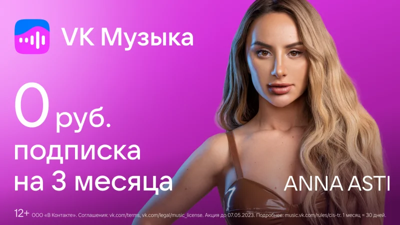 Чтобы в полной мере оценить нововведения, слушатели в пяти странах СНГ могут оформить трехмесячную подписку на VK Музыку бесплатно. С её помощью каждый пользователь получает максимальные условия для комфортного прослушивания музыки: прослушивание музыки без интернета, с выключенным экраном телефона, отсутствие рекламы и других ограничений. Акция доступна для всех новых пользователей и действует до 7 мая 2023 года.