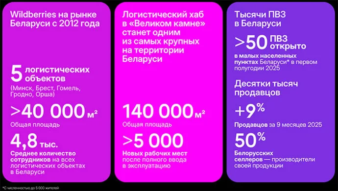 К слову, в скором будущем ожидается запуск самого большого логистического хаба Wildberries в Беларуси. Объект площадью в 139 тыс. кв. м, расположенный на территории Индустриального парка «Великий камень», будет вводиться в эксплуатацию поэтапно.